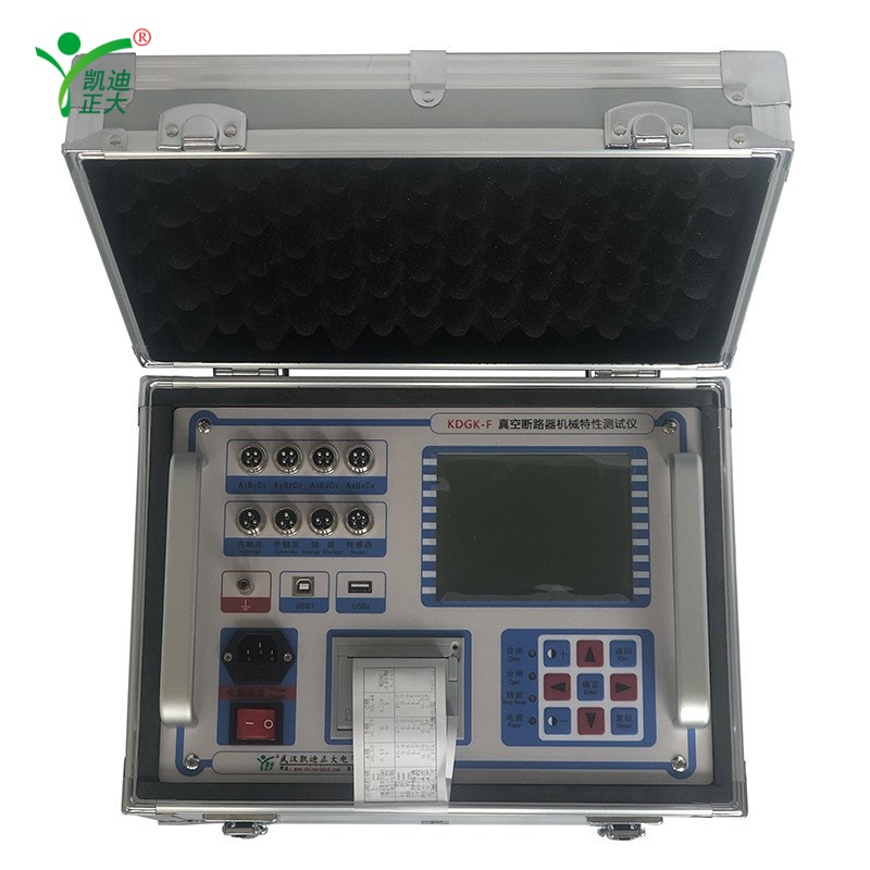 The KDGK-F Circuit Breaker Dynamic Characteristic Tester is a portable, high-precision instrument for analyzing the mechanical performance of high-voltage circuit breakers. It supports 12 break ports to measure closing/opening time, bounce, speed, stroke, current, and energy storage, with a built-in adjustable DC power supply (DC30~250V/20A) for coil action voltage testing. Equipped with a large-screen LCD and Chinese interface, it features strong anti-interference capability (operable in 500kV substations), built-in printer, and data storage, making it ideal for on-site maintenance and factory quality control.