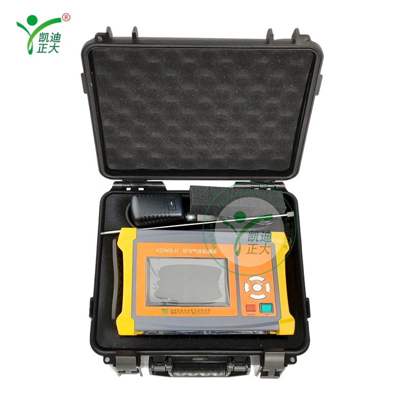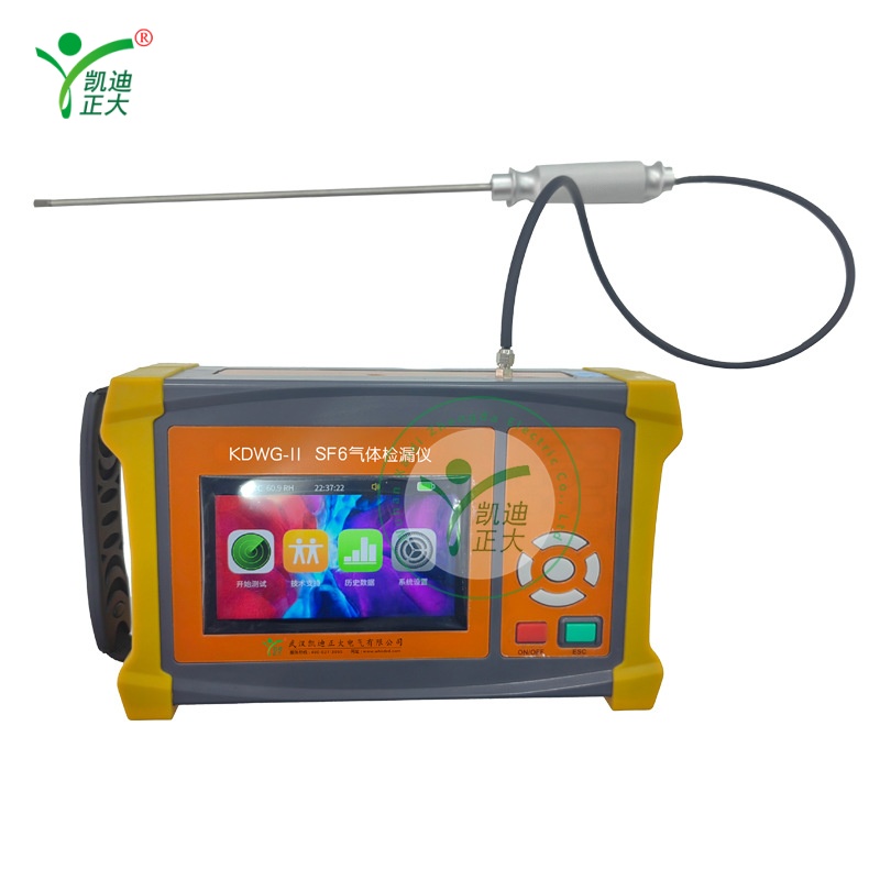 The KDWG-II is a portable SF6 leak detector for power substations, GIS rooms, and electrical maintenance. It quickly identifies trace SF6 gas leaks in high-voltage equipment, ensuring personnel safety and reliable operation of SF6-filled switchgear.