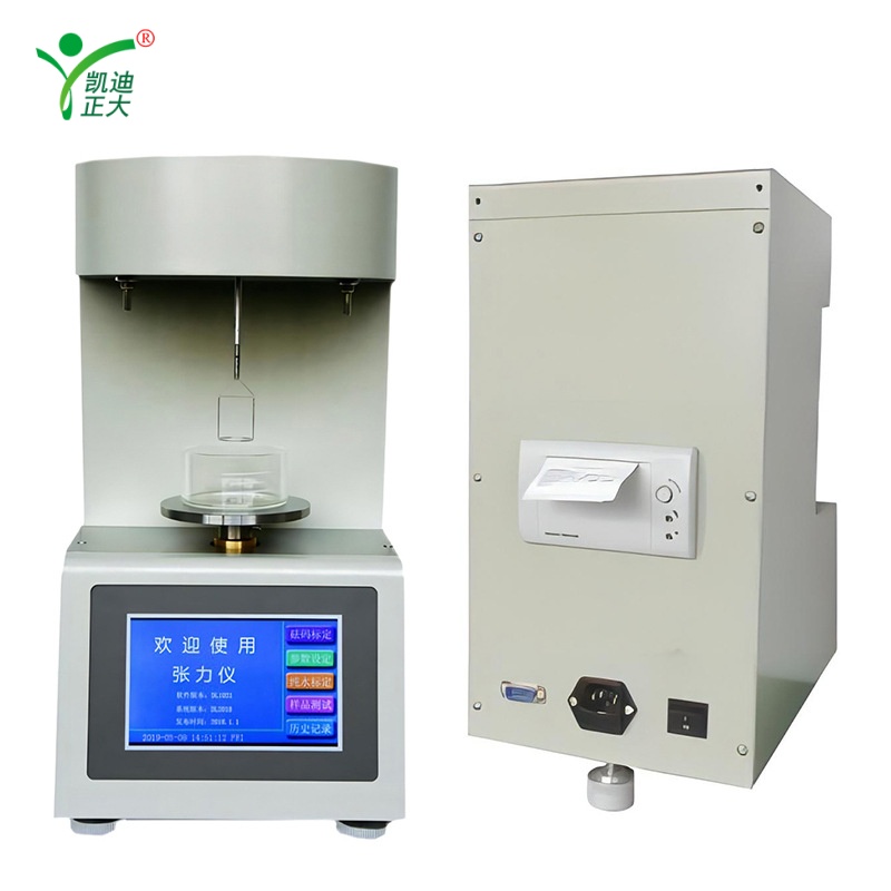 The KDZL-203 is a high-precision automatic surface and interfacial tension meter designed for accurate liquid testing. It employs a fast-response electromagnetic force balance sensor to enhance measurement accuracy and linearity, with a single-point calibration that eliminates the need for multi-point calibration and manual zero adjustment. The instrument features real-time display of equivalent tension and current weight, plus integrated temperature detection for automatic temperature compensation. A 240×128 dot-matrix LCD with unmarked keys and screen protection ensures intuitive operation, while time-stamped historical records (up to 255 data points) and a built-in high-speed thermal printer support efficient data management and output.