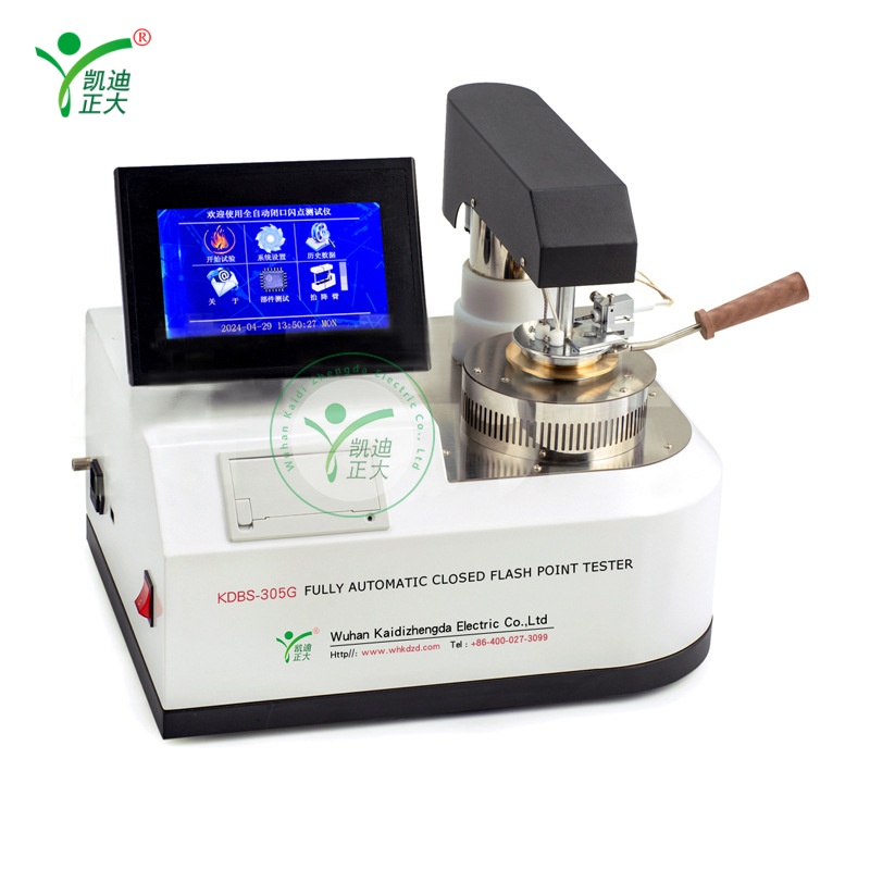The KDBS-305G is a fully automatic closed cup flash point tester designed for accurate and reliable testing of petroleum products and asphalt. It features an integrated structure with an ARM microcontroller, enabling automated heating, stirring, ignition, testing, data printing, and storage. The large 800×600 color touchscreen with bilingual Chinese-English interface ensures intuitive operation. Equipped with an atmospheric pressure detection module for result correction, it supports automatic test tube lifting, ignition, lid opening, detection, and air cooling. It stores up to 250 test records and offers optional wireless or RS232 connectivity for data exchange, delivering consistent results with high repeatability and reproducibility.