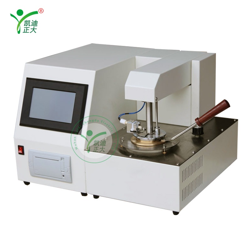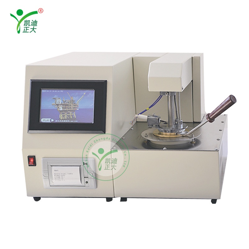 The KDBS-305D is a fully automatic closed cup flash point tester designed for petroleum products, lubricants, and fuel oils. It features a modular design with one-master-multi-furnace capability, allowing simultaneous or sequential testing of multiple samples. The instrument uses a high-speed signal processor for precise control, with a platinum resistance temperature sensor delivering accurate measurements. It includes automatic atmospheric pressure detection and correction, adaptive PID temperature control, and a no-source ignition system for reliable operation. The 320×240 touchscreen LCD, built-in thermal printer, and RS232 interface ensure intuitive operation and efficient data management, with fault detection and alarm functions for