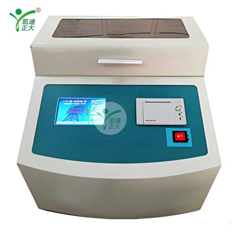 The KDJJC-G is an upgraded, fully automatic insulating oil dielectric strength tester built for efficiency and ease of use. Controlled by a microcomputer, it automates static charging, voltage boosting, stirring, averaging, data display, storage, and printing—reducing labor and improving test efficiency. It features an 800×480 color touchscreen with backlight for clear visibility, 13 built-in test standards, and 10 selectable boost rates (0.5–5.0 kV/s). The adaptive design supports multi-cup testing, with strong anti-interference capability for strong electromagnetic environments. Over-voltage, over-current, and limit protections ensure operator safety, making it ideal for labs and field use with high sample volumes.