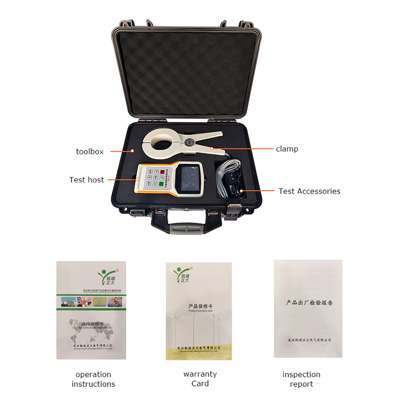 KDZD Transformer Core Grounding Current Tester is a tester specifically designed for measuring transformer core grounding current, featuring a wide measurement range (0-10000mA) and high resolution (0.0001mA). It is equipped with a 3.5-inch true-color LCD touchscreen, supporting both button and touch control modes. Built-in non-volatile memory stores 400 data sets, and a high-capacity lithium battery provides over 8 hours of standby time. Its compact and lightweight (0.5kg) design makes it ideal for field use.