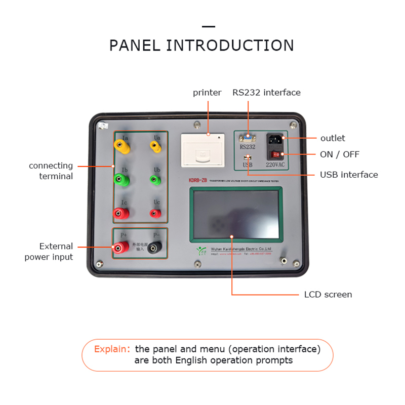 KDRB-ZB is a professional low-voltage short-circuit impedance tester that uses a single-phase 220V power supply and features automatic frequency correction. It uses internal power to control the output voltage/current, eliminating the need for external regulators. Automatic three-phase measurements can be initiated with a single connection, displaying voltage, current, power, frequency, and impedance results on a large LCD screen. The device uses non-volatile memory to store thousands of test records and offers optional external power input for flexible field use.