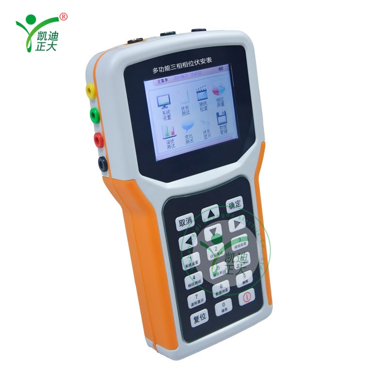 The KDZD2030 is a portable, handheld multifunctional three-phase phase volt-ammeter combining phase and harmonic test functions. It features a 3.2-inch color TFT display and intuitive operation, supporting measurement of AC voltage (30~450V), current (10A~1500A), phase (-180°~+180°), and power parameters. With built-in 32MB storage (30,000+ records) and USB export, it enables efficient analysis of transformer wiring, phase sequence, and relay protection systems. Its lightweight design and long-lasting lithium battery make it ideal for field use.