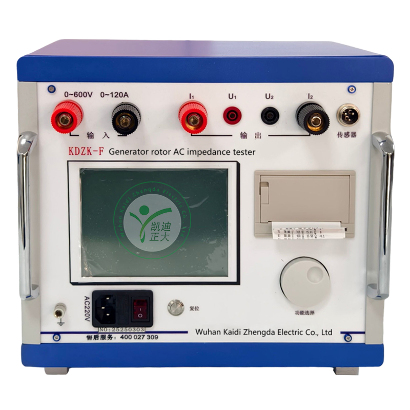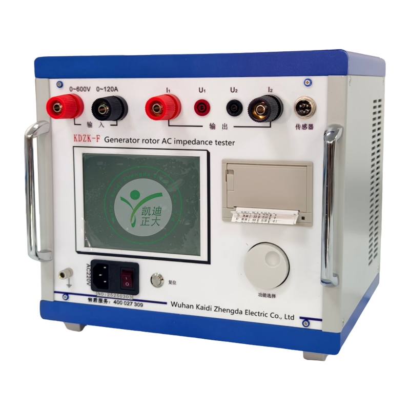 The KDZK-F Generator Rotor AC Impedance Tester is a specialized instrument designed to detect inter-turn short circuits in generator rotor windings. It can automatically or manually (in single or dual direction) measure key parameters of the rotor winding, including voltage, current, impedance, power, and phase angle.