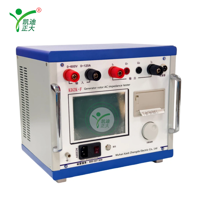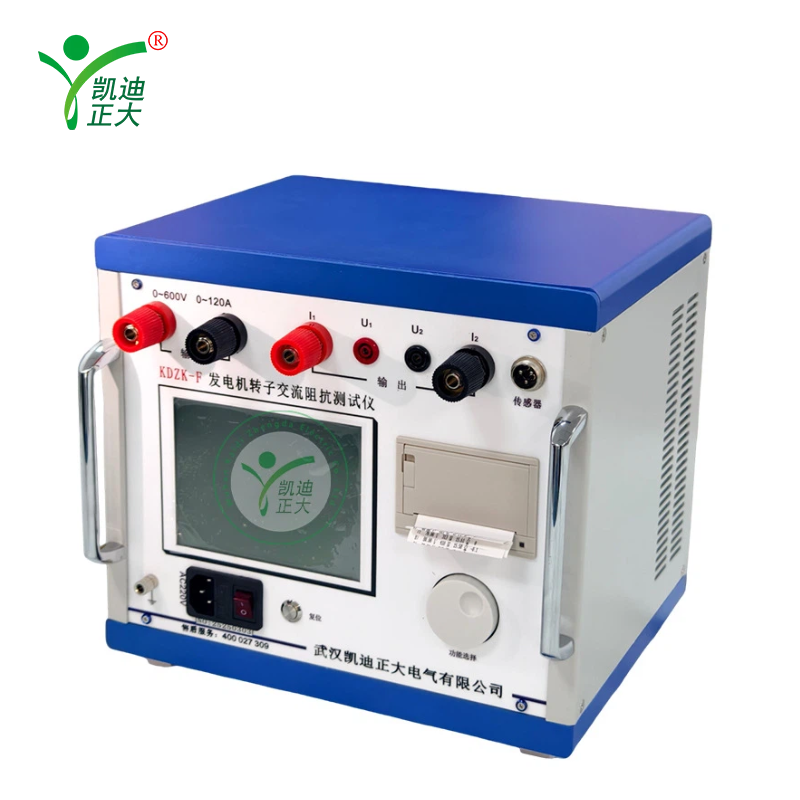The KDZK-F Generator Rotor AC Impedance Tester is a dedicated instrument for judging inter-turn short circuits in generator rotor windings. It measures static AC impedance and characteristic curves of windings in synchronous generators/asynchronous motors, and also performs tests for single-phase transformers, PT/CT, and arc suppression coils.