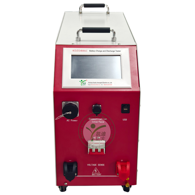 The KDZD886 series battery charge and discharge tester is designed specifically for checking discharge tests, charging tests, remaining capacity tests, battery activation and repair, daily maintenance, and checking the carrying capacity of DC power supply for battery packs (12V, 24V, 48V, 110V, 220V, 380V, 480V). Based on the charging and discharging characteristics of lead-acid batteries and lithium batteries, this tester can monitor in real-time parameters such as battery voltage, current, charging and discharging duration, charging and discharging capacity, and battery pack activation cycle during the charging and discharging process. The instrument adopts an embedded operating system, supports wireless data transmission, and automatically completes the entire constant current and constant voltage charging and discharging process with one click activation. It can generate various intuitive curves, bar charts, reports, etc. that reflect the performance of battery packs, and can be enlarged, queried, and printed. It is possible to analyze battery performance, making battery maintenance and management easier and more scientific, thereby extending the service life of the battery pack. If used in conjunction with the wireless cell inspection module, it can effectively monitor the voltage of individual cells in the battery pack and promptly detect faulty batteries that have severely deteriorated performance and caused overcharging.