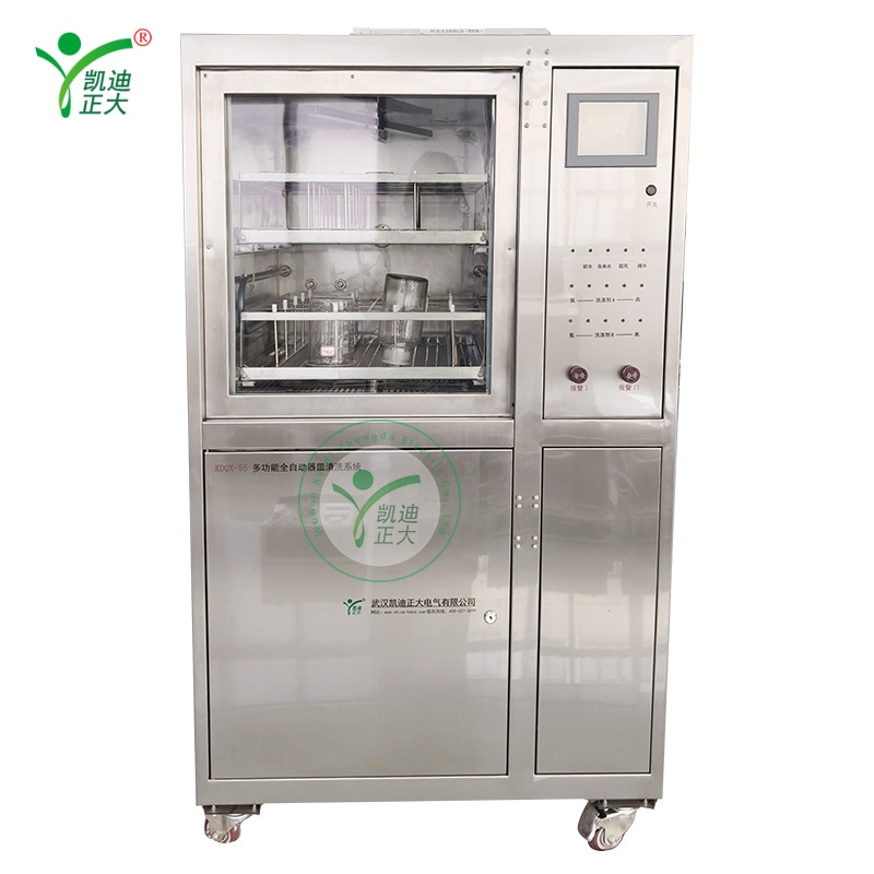 The KDZD Automatic Labware Washer is a fully automated system designed to clean and disinfect laboratory glassware to analytical-grade standards. It integrates high-temperature softening, high-pressure stripping, acidification, oil emulsification, and UV disinfection technologies. With a dual-CPU control system and multiple cleaning modes, it ensures reliable operation and high cleanliness. The stainless steel construction and mobile design make it ideal for modern laboratory workflows.